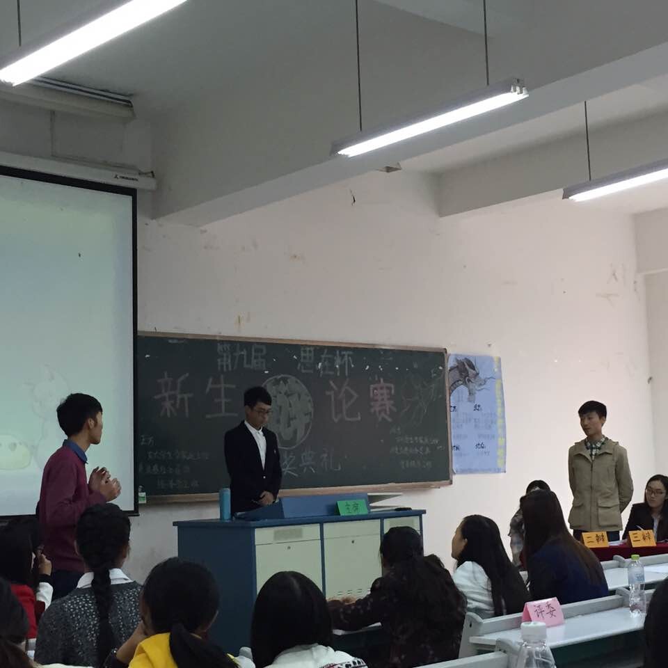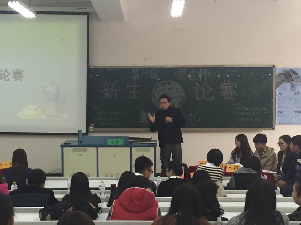 (经济系记者 葛杭城)2014年11月11日中午12时,由经济系团总支学生会举办的“思在杯”系际辩论赛决赛暨颁奖典礼在10303教室顺利举行。应邀出席本次大赛的评委有:经济系党总支副书记李红平、经济系学团办副主任肖婵、经济系专职辅导员杨邓旗以及辩论队成员王倩、郝乾成。另部分经济系老师及百余名学生代表到场观看了比赛。