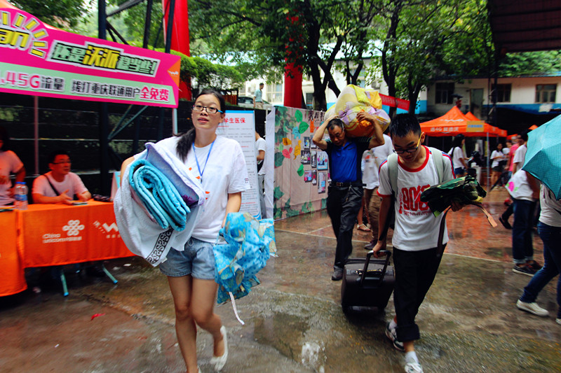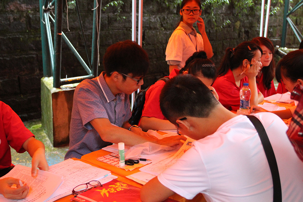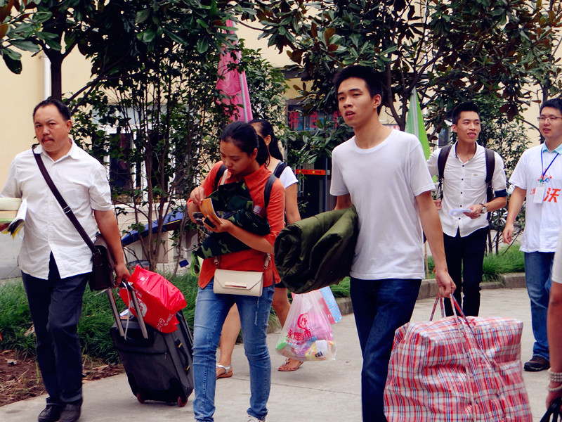 9月13日上午7:00天蒙蒙亮,迎新工作陆续展开。学院师生上下齐心,共同努力,热情周到地接待着每一位新生及其家长们。迎新志愿者们早早集合在迎新现场,有的仔细核查每一位新生所在班级的信息,保障每一位新生都能及时准确地报到注册;有的向新生们耐心详细地讲解报到流程,并向他们分发了入学手册;还有的志愿者热心带路,帮助新生搬运行李等。随着前来报到注册的新生越来越多,志愿者们的脚步逐渐加快,雨水、汗水与笑容交汇在他们脸上,一张张幸福的脸,一个个可爱的人,营造出美丽和谐的校园氛围。