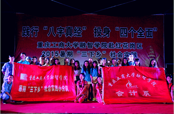 据了解,自7月15日,在贵州省遵义市红花岗区区政府2号会议厅正式启动“重庆工商大学融智学院赴红花岗区2015年暑期‘三下乡’社会实践”活动以来,我院会计系为顺利开展此活动,因才供需,按需出发,定制大力践行文艺下乡栏目。当天,27名青年大学生和3名指导老师便怀揣梦想来到金鼎山镇金川村,为紧后一周的文艺演绎打下基础。