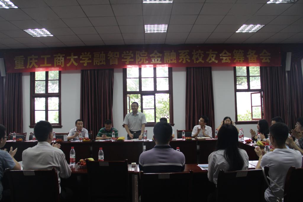 (通讯员 谭琦 李婧杰)情系金融,共创锦程。重庆工商大学融智学院金融系校友分会筹备会会议于2015年5月24日14:30在红楼301会议室准时召开。学院副院长吴华安,党委副书记陈龙国,金融系主任樊昌国,党政办公室主任王晓云,招生就业处处长李春雷,金融系副主任崔中山,党群工作部副部长倪倩茜及金融系部分老师参加了此次会议。金融系党总支副书记唐川川主持本次会议。