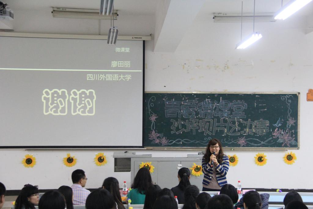 (学生记者 焦堃 李肖潇)为引导同学们学会感恩,珍爱生命,关注身心健康。2015年5月22日下午我院在10402教室举办了重庆市第六届大学生成长论坛之青爱微课堂沙坪坝片区决赛。此次决赛邀请到四川外国语大学心理咨询中心主任何敏老师、第三军医大学心理咨询中心王晓霞老师及我院思政部主任常晓薇老师担任评委,我院院长助理兼学生处处长李果以及心理健康与艺术教研室的老师们应邀出席本次活动。