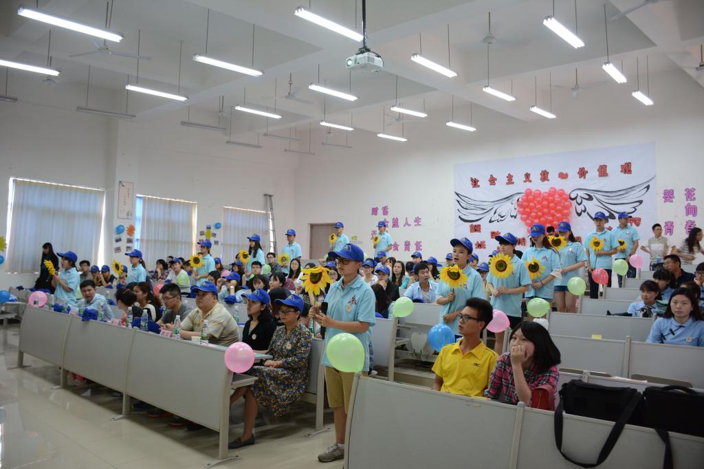 “筑梦未来,与爱同在”,在启动仪式上,戴嘉琳等16名同学手持向日葵,深情演唱开场曲《最好的未来》,葵花与柔美的歌声融合,顿时为现场营造了一片温馨的氛围。接下来同学们通过视频回顾了往届“青爱”,在感受爱心的同时了解了活动的目的和意义。在“你眼中的‘青爱’”环节中,该系学生会副主席蒲志霞同学袒露心扉,表示经历三年的“青爱”,虽然步步艰辛,但时刻在成长,活动也在不断的改革创新中越加出彩,这使广大学生越来越信赖“青爱”;他们一致坚信善心要善行,需用行动传递爱心,作为当代大学生,大家有责任和义务去为公益事业作出努力,尽己绵薄之力;其中一位志愿者朴实的话语同样打动人心,她说到,帮助别人是没有理由的,是发自内心的,她相信第一次志愿者经历一定会积累实践经验,认识社会,服务社会。活动主办方学生代表刘湘湘在发言中提到:“我们要积极响应“四进四信”的号召,通过这次活动走进老人和孩子的心灵,分享温暖,送去温情。”随后,王玲艳老师宣布“青爱”活动正式启动。“青爱”不仅呼吁全院师生积极参与,也需要社会人士关注,赞助商代表王鹏飞总经理表示,“关注”即是“力量”,启动只是一个开始,他期待更多的人关注公益,参与公益。随即所有志愿者写下心愿祝福卡片,共筑爱心墙。最后,管理工程系党总支副书记罗婷婷老师宣布“传递正能量,青春勇担当”第四届“青春与爱同行”活动正式启动。