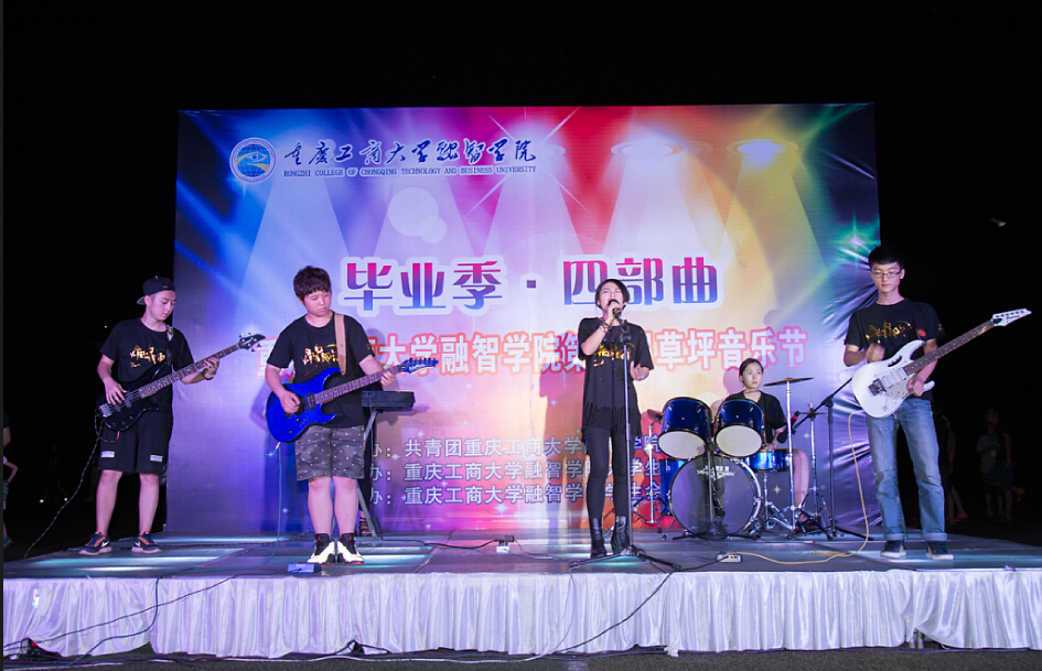 (通讯员 王宇辰 周勇)琼顶之下,绿荫之上;莘莘学子,齐聚一堂;引吭高歌,放飞梦想。我院“毕业季•四部曲”第二届草坪音乐节于2015年5月10日19:00在足球运动场顺利举行。出席本次活动的嘉宾分别是重庆工商大学融智学院院长柏群教授、党委陈龙国副书记、吴华安副院长、院长助理兼学生处处长李果老师以及各职能部门负责人和各系辅导老师。本次草坪音乐节吸引了学院近2000名同学观看。