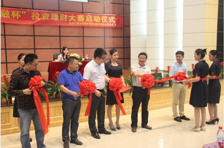 仪式最后,由吴华安副院长、陈龙国副书记、钱森总监、周雄副处长、李刚副书记为本次活动进行剪彩以表达对同学们的期望。至此,第一届“融智金融杯”模拟投资理财大赛启动仪式圆满落幕。