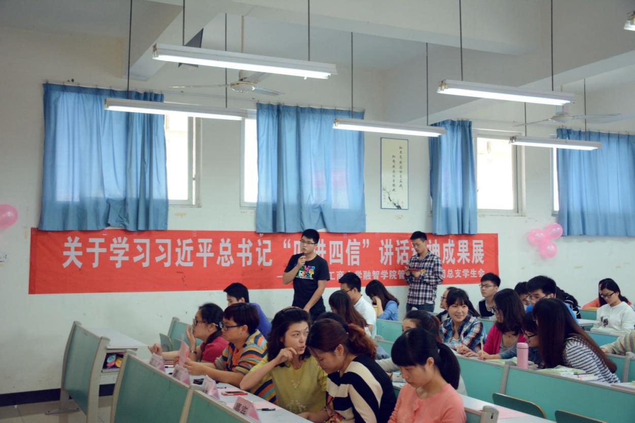 (通讯员 刘光念 王双)为响应院团委号召,继续深入学习贯彻习近平总书记系列重要讲话精神,管理工程系团总支学生会开展 “四进四信”系列学习活动,并于2015年5月6日12:00在10312教室举行成果展。管理工程系党总支副书记罗婷婷、学团办主任王玲艳、党总支宣传委员姜采妮、楼管会主任练丹及学生支部宣传委员梁珍铭老师作为嘉宾出席本次活动。