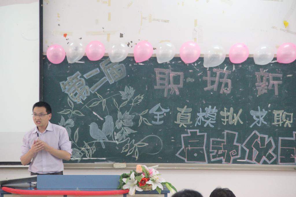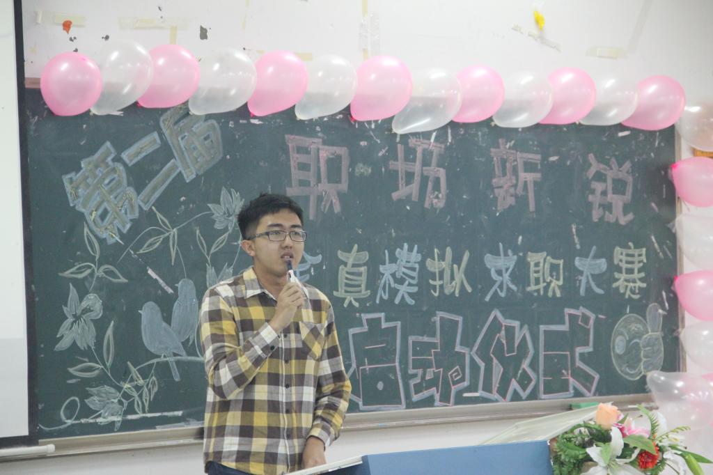 只要有信心,世界更加精彩。活动最后,经济系党总支副书记李红平上台发言。他首先对本次的参赛选手及活动人员表示感谢,然后告诫选手们须端正态度。提出了“认真对待,精心准备,完美展现,全力以赴”四个关键,强调态度的重要性。随着李老师宣布第二届“职场新锐”全真模拟求职大赛正式开始,本次启动仪式也顺利落幕。